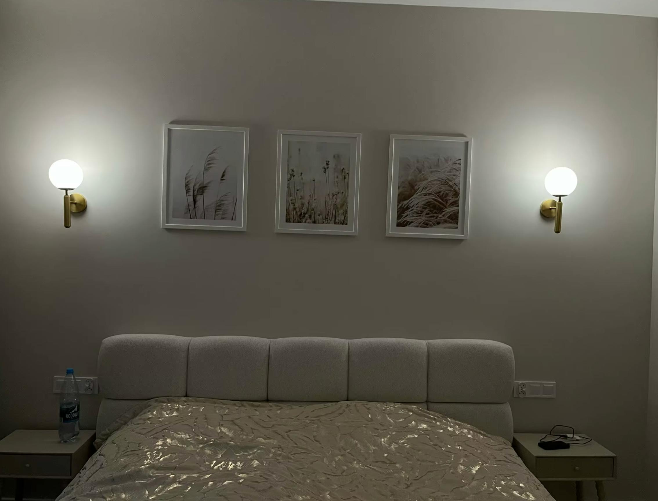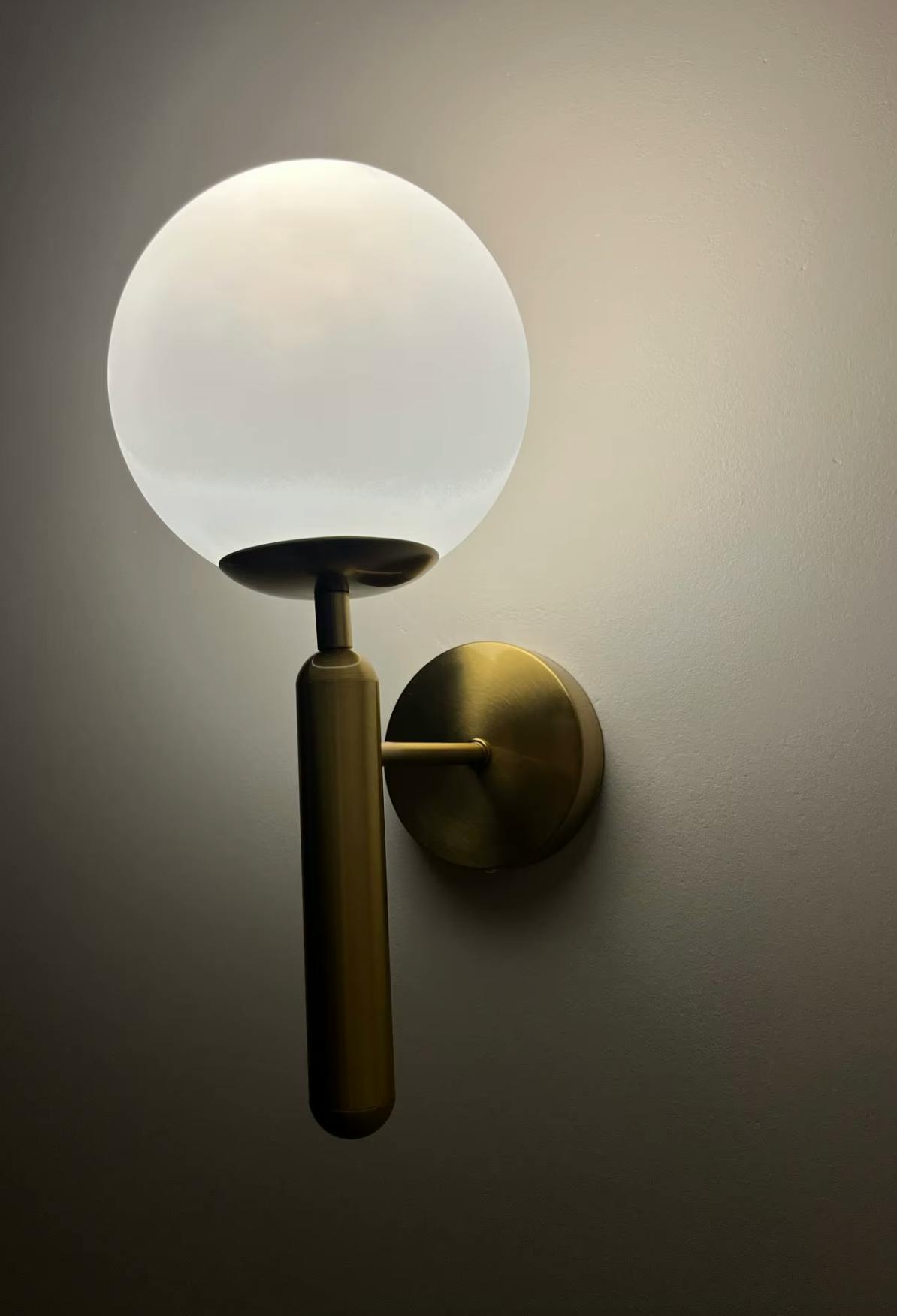 The AuraGlobe Wall Lamp brings a perfect blend of modern simplicity and warm elegance to your home.