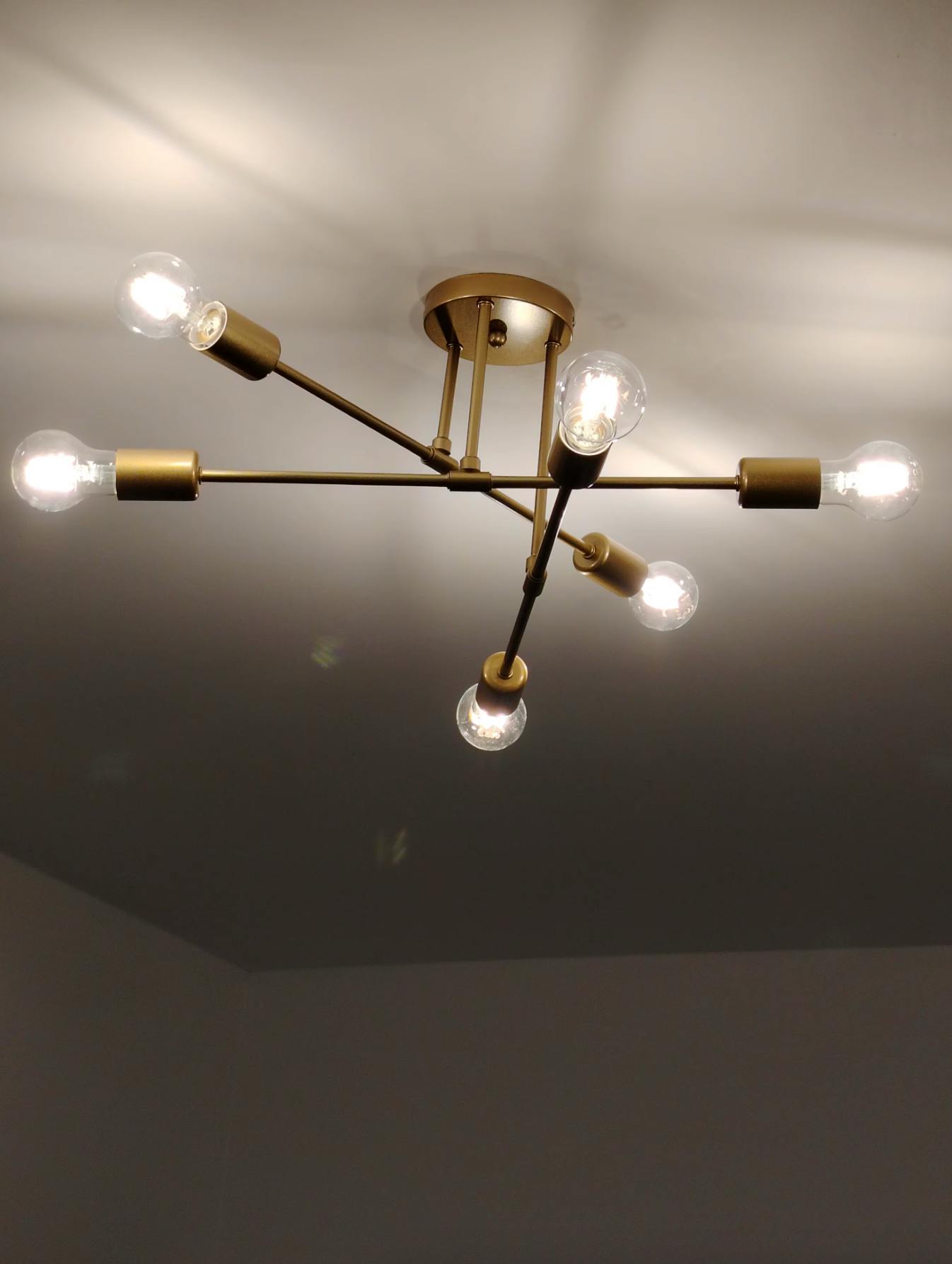 - Contemporary Design: Inspired by the iconic sputnik style, reimagined with clean lines and a luxurious gold finish.