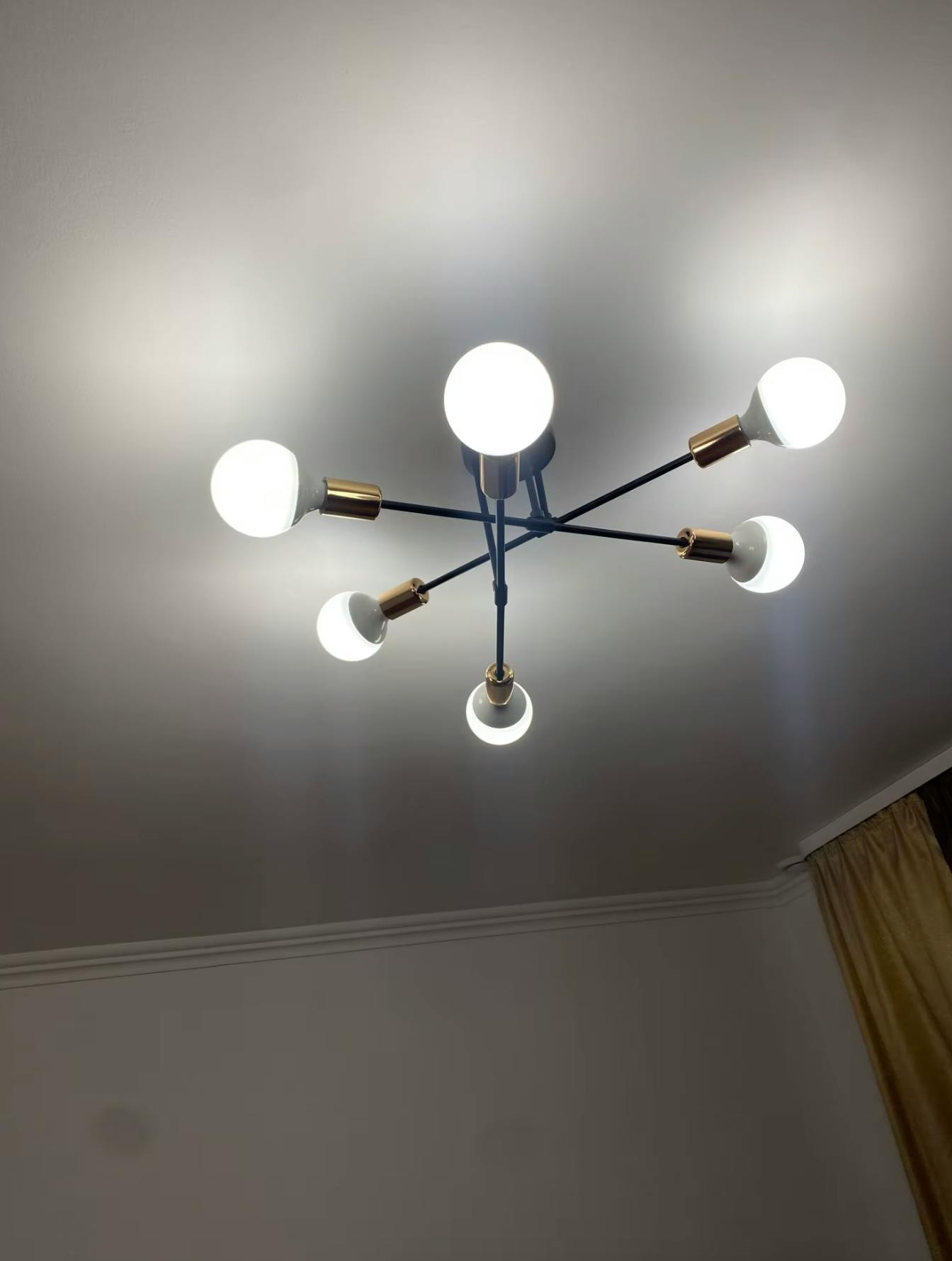 Its symmetrical six-arm design and soft, glowing bulbs bring warmth and balance to any room — from your bedroom to your dining area.