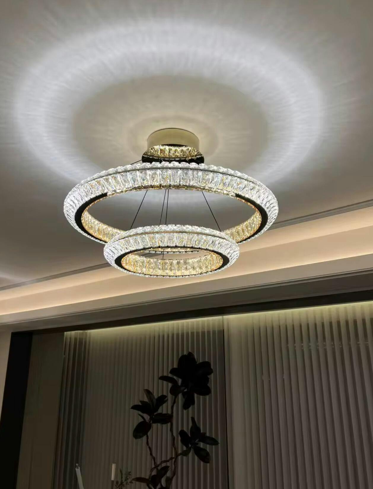 Add a touch of modern grandeur to your home with the LumiHalo Crystal Chandelier — a masterpiece of light and luxury.