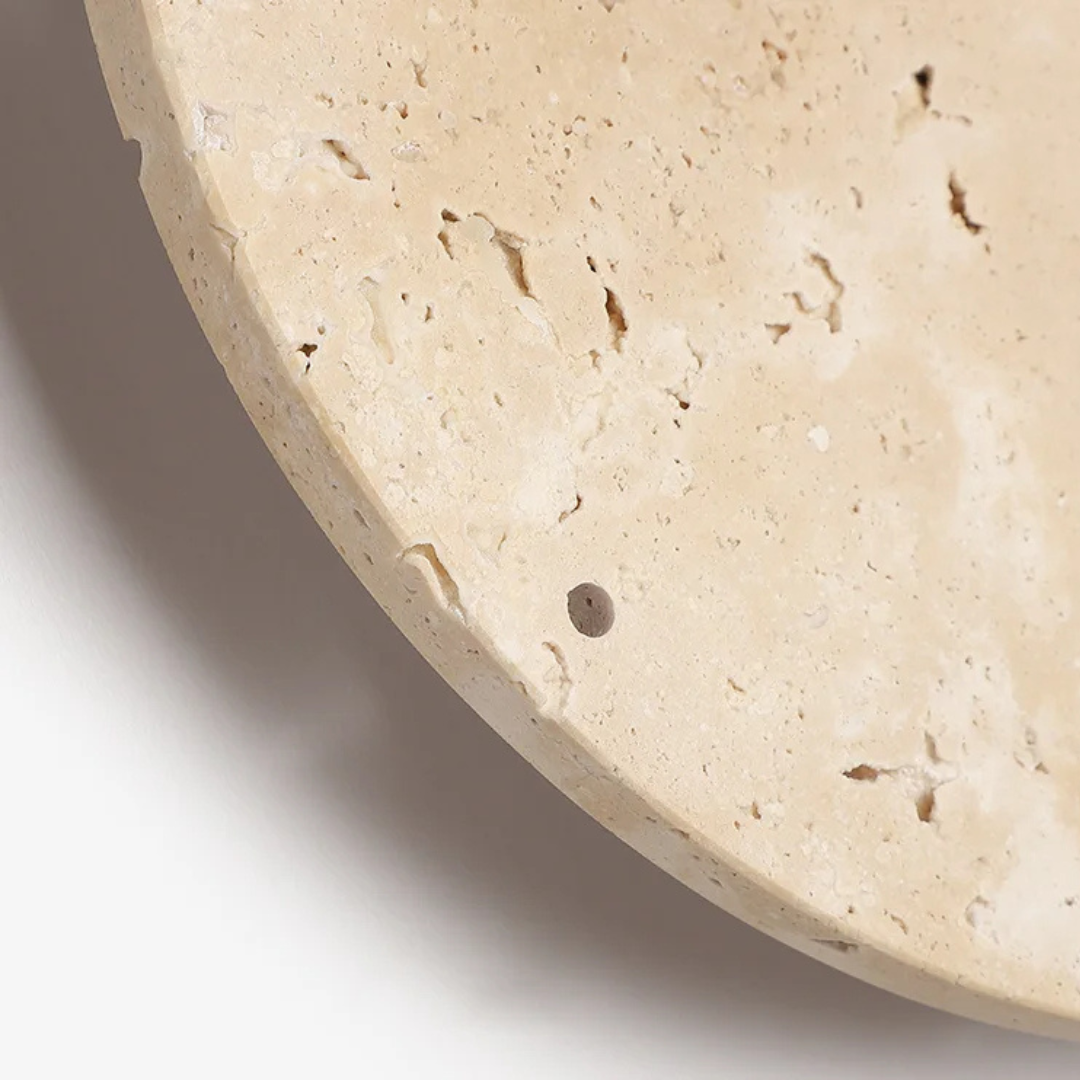Crafted from genuine yellow travertine, this piece captures the serene texture of stone, accented with warm solid wood hands and a subtle built-in LED backlight that creates a soft ambient glow.