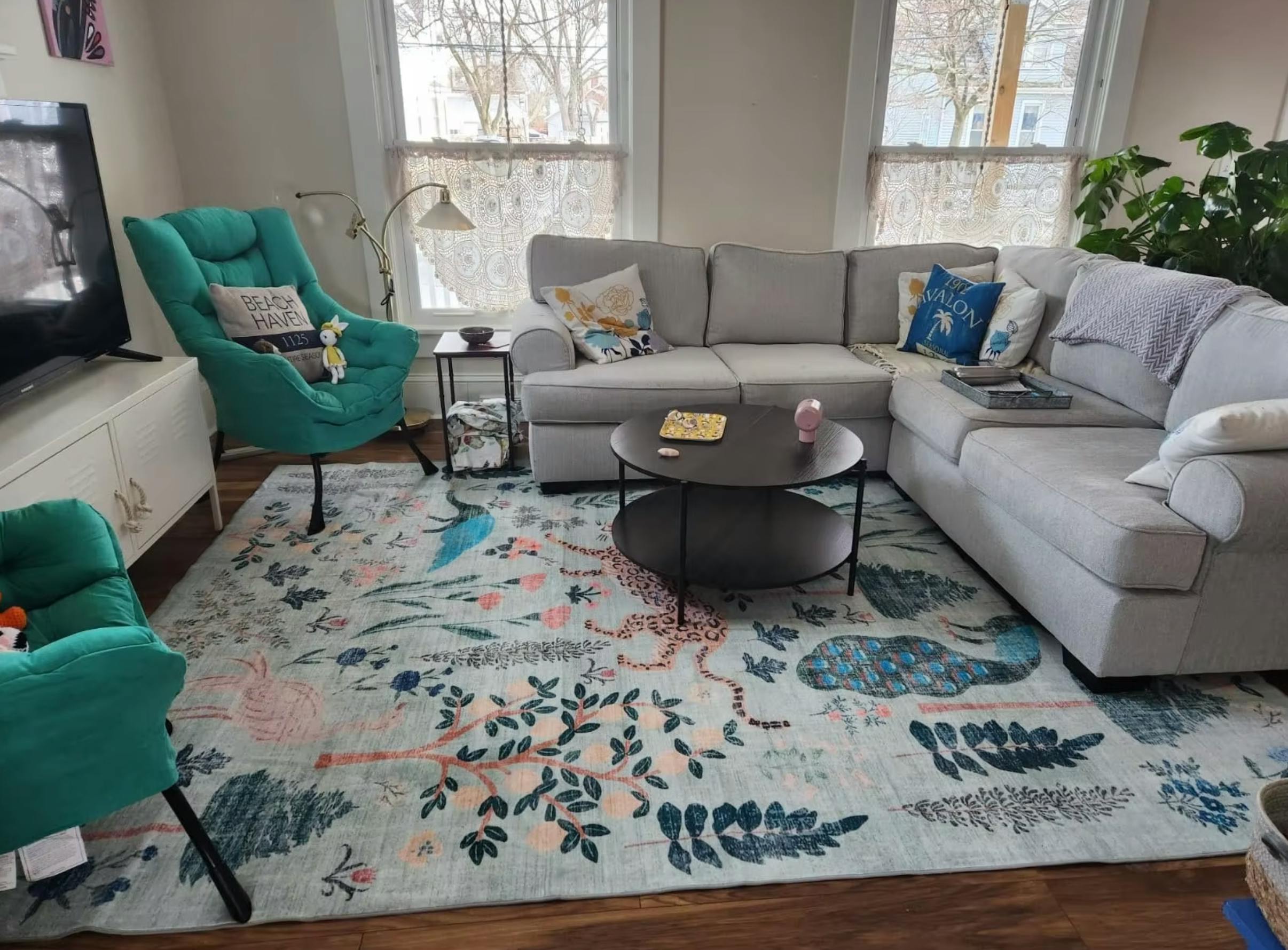 The rug adds so much character to my living room. The texture is amazing, and it stays flat without curling.